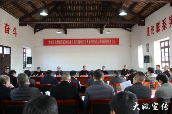 李开传、宋宗基、马跃云、沈克敏、黄忠、余忠诚、李国荣、张唯岚、胡照平、周建民、杨晓丽等县级领导参加调研并对七街社区红色村组织振兴建设红色美丽村庄试点项目提出意见建议。相关部门主要负责同志围绕“发挥部门职能职责,加强项目资金整合,把七街社区打造成为红色美丽村庄示范村”作表态发言。