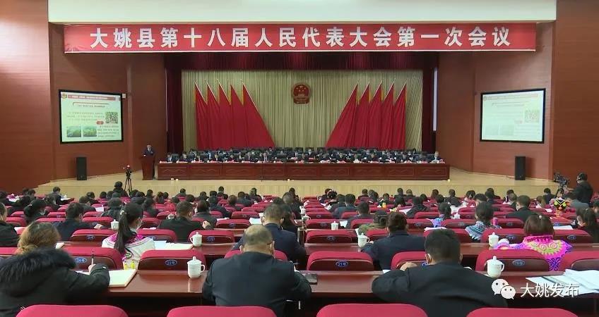 在大姚县第十八届人民代表大会第一次会议上,杨军代表县人民政府向大会报告工作。
