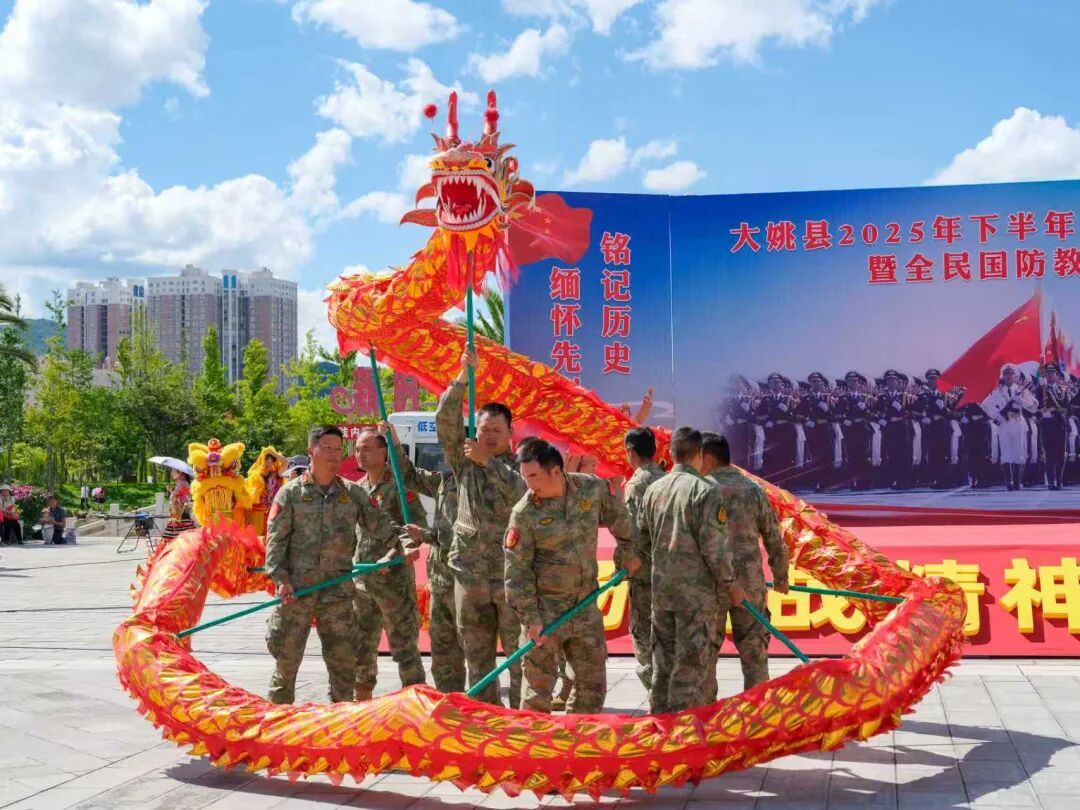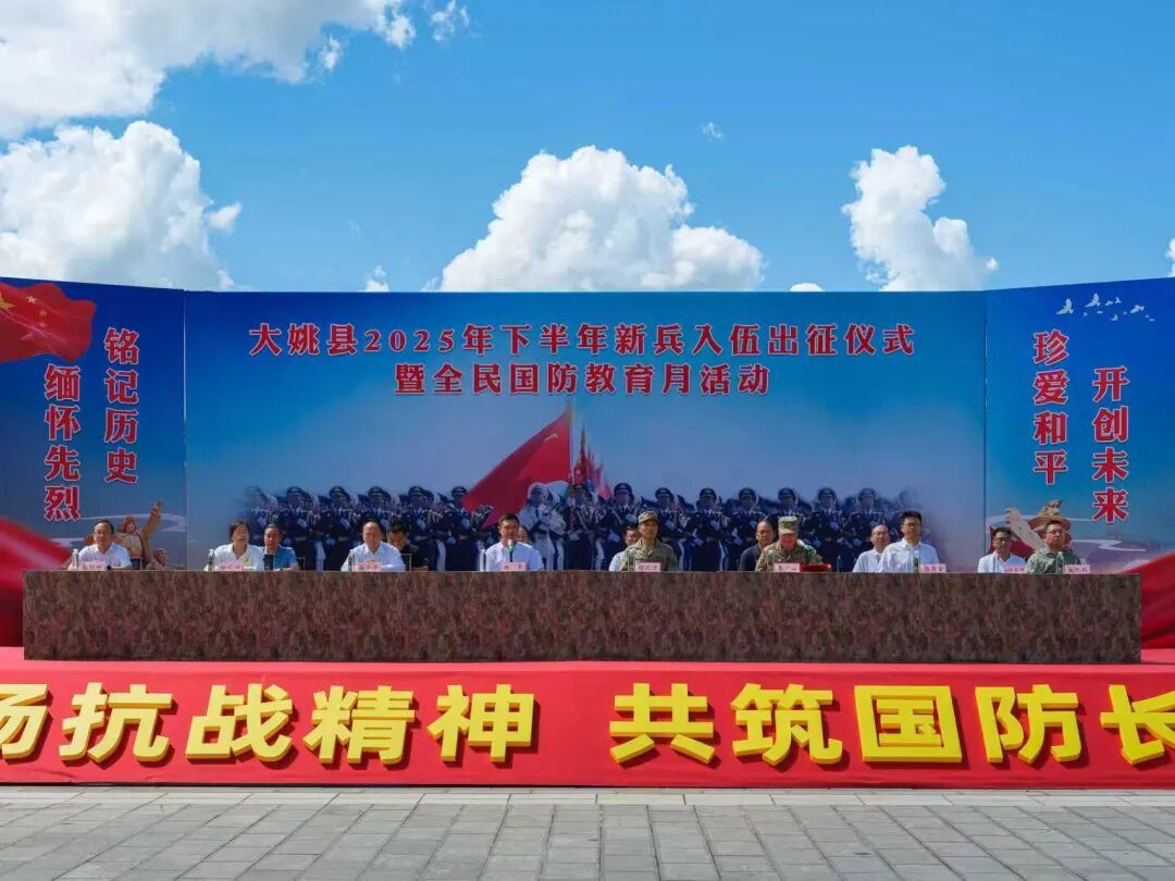 9月15日,大姚县在蜻蛉湖广场举行2025年下半年新兵入伍出征仪式暨全民国防教育月活动。40名新兵身着崭新戎装,胸佩鲜艳红花,带着家乡人民的殷切期望,奔赴军营,开启保家卫国的热血征程。