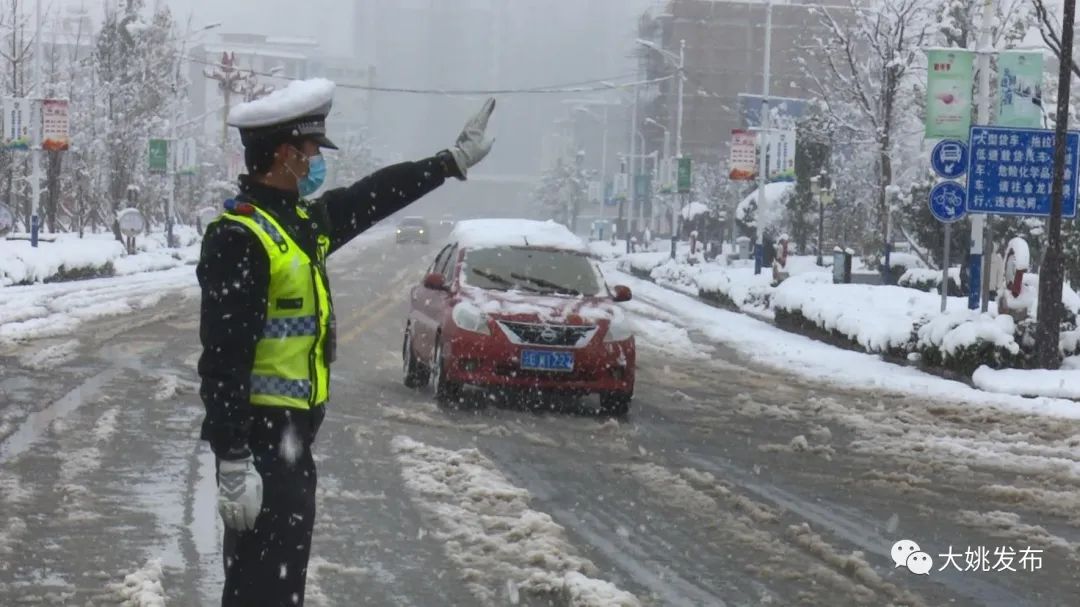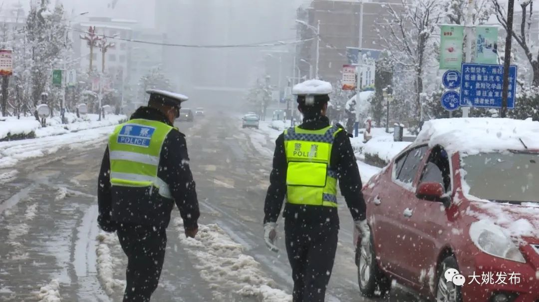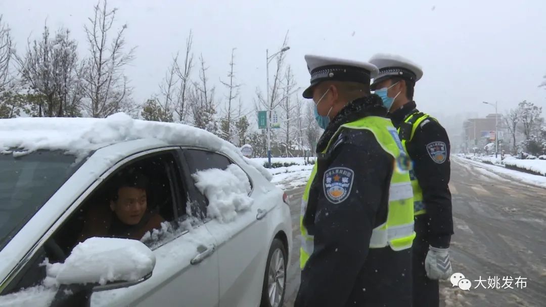 大姚县交警大队闻雪而动,迅速启动恶劣天气应急预案,全体民警、辅警提前到岗,最大限度将警力投放路面,全力加强路面巡逻管控力度,及时消除交通隐患,做好交通疏导工作,确保全县整体道路交通秩序安全、有序、畅通。