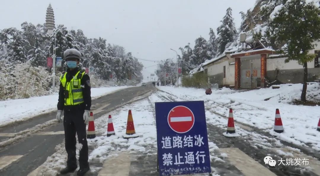 大姚县交警大队警员金黄芸松说:“受强降雪天气影响,大姚辖区境内普降中到大雪,道路积雪结冰严重,不具备通行条件,大姚至楚雄高速公路各国道、省道、县、乡、村组道路现已关闭,客运车辆、网约车已停运,且目前降雪还在持续,望广大交通参与者和各位驾驶员合理规划出行时间和出行路线,谨慎驾驶,非必要不出行。”