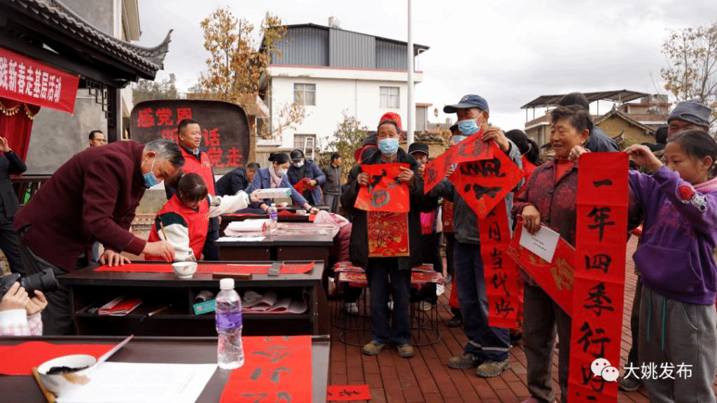 临近春节,大姚县在初屯小组开展“新春走基层”送春联活动(张从华摄)