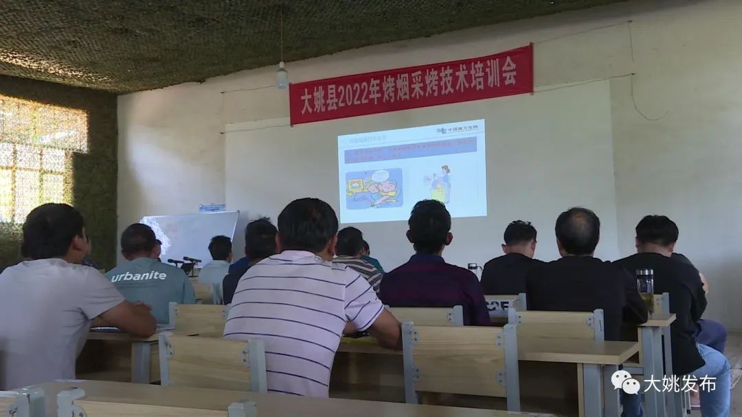 培训现场,大姚供电局“电力专家”通过PPT课件向烟农们讲解烤烟季节“用电安全”知识要点,讲述如何安全用电、烤烟过程中的用电要求,以及发生事故时的紧急处理方法和注意事项,让烟农们了解到安全用电的重要性,为接下来即将进行的大规模烤烟烘烤用电提供了指导和帮助。