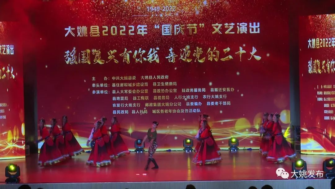 文艺节目内容丰富、形式多样,晚会在柔美有力的舞蹈《辉煌中国梦》中拉开了序幕;情景舞蹈《我爱你中国》《红色记忆》诉说着中华儿女对祖国的热爱,台下的观众也共同挥舞国旗表达自己的心声;舞蹈《领航新时代》《再一次出发》歌颂中国共产党驾驭理想、开辟航道,用舞姿诠释对党和祖国的无限热爱和敬意,抒发永远跟党走、奋进新征程的豪情壮志;欢快的彝族舞蹈《彝家迈进新时代》充分展示了彝族同胞们的生活欣欣向荣;乐器合奏《欢乐彝家情》将树叶、笛子、口弦、四弦胡、葫芦笙组合在一起,用民族的乐器演绎现代的旋律;音乐快板《养老保险是靠山 老有所养才平安》、情景剧《守护 》以创新的形式把养老保险政策以及反诈骗宣传知识与文艺节目巧妙的结合起来,让观众通俗易懂、印象深刻;大合唱《歌唱祖国》、诗音画《复兴》反映了新时代中国特色社会主义道路上,广大人民群众对美好生活的向往和追求;整场晚会在诗歌朗诵《喜迎党的二十大 砥砺奋进新征程》中落下帷幕。