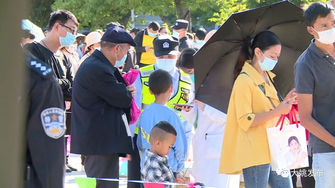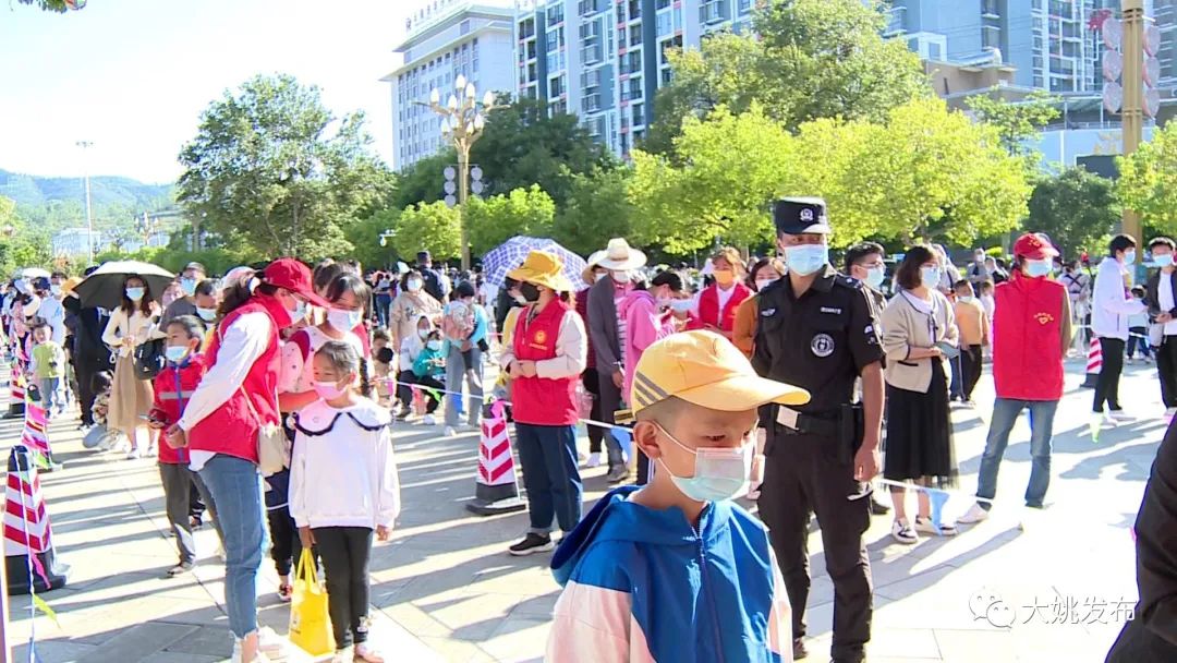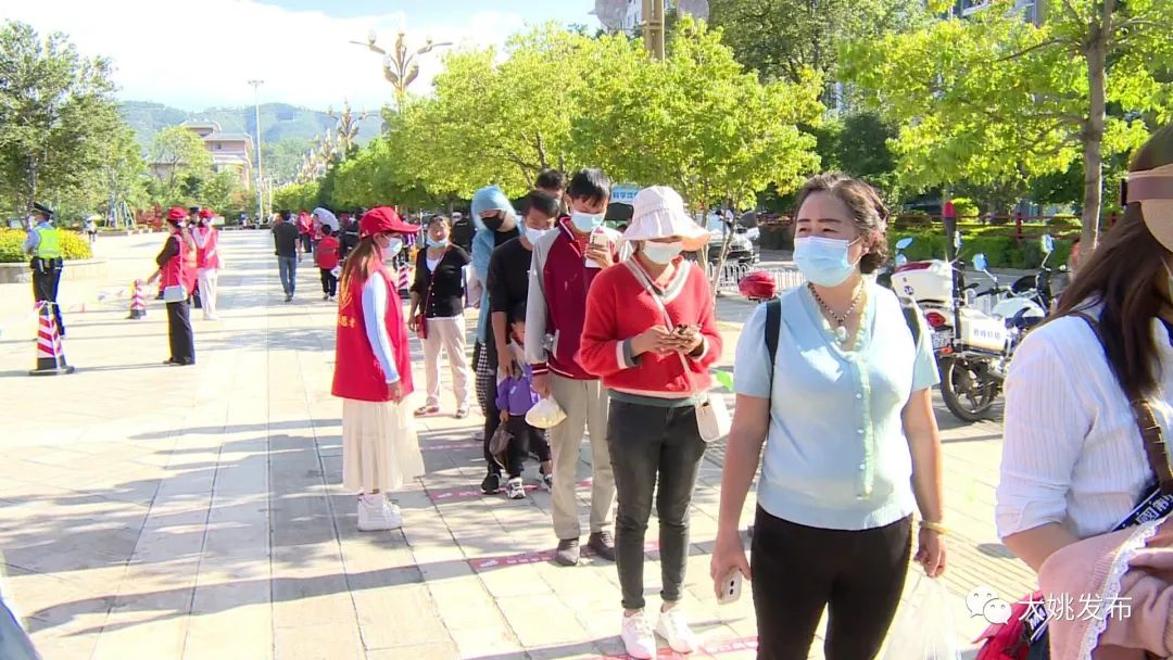 大姚县公安局特警大队志愿者熊兴超说:“国庆期间,大姚县公安局全体民警辅警在岗在位,今天到蜻蛉湖广场核酸采集点维护现场秩序,如果现场有人民群众需要帮助时,我们会及时伸出援手。”