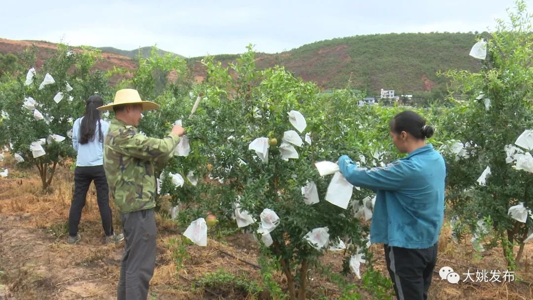在龙街镇鼠街村委会绞苴村的软籽石榴基地里,几个村民正忙着给第二批石榴套袋,确保石榴生长过程中果面洁净,还能防止石榴病虫害。绞苴下村的李进钊便是其中之一,土地流转出去后,就到软籽石榴基地务工,到现在已近四年,土地流转也让李进钊一家的收入有了很大提高。