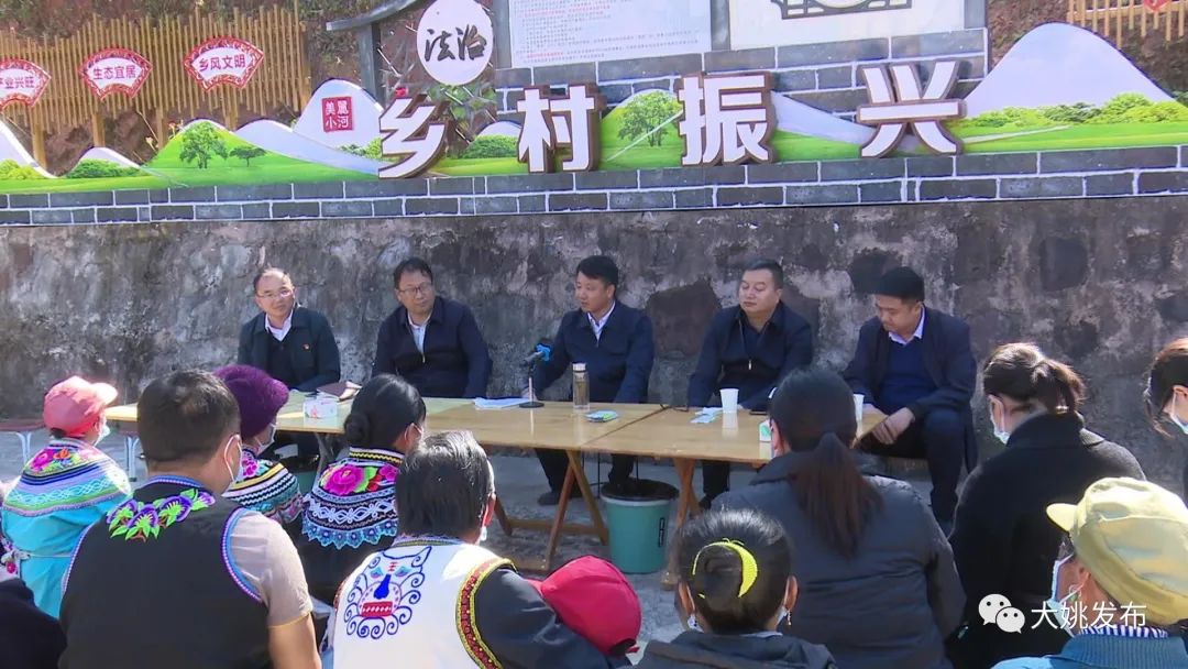 在六苴镇簸箕村委会小河村民小组,刘勇向基层干部群众宣讲党的二十大精神,勉励大家听党话、感党恩、跟党走,依靠勤劳智慧推进共同富裕,创造更加幸福美好的新生活。刘勇指出,要把产业和就业作为推进乡村振兴、促进群众增收的重要抓手,大力发展彝族刺绣、核桃、肉牛养殖等特色产业,不断拓宽就业渠道,确保群众稳定增收。要进一步加强基层党组织建设,发挥党员先锋模范作用,努力促进农业高质高效、乡村宜居宜业、农民富裕富足。