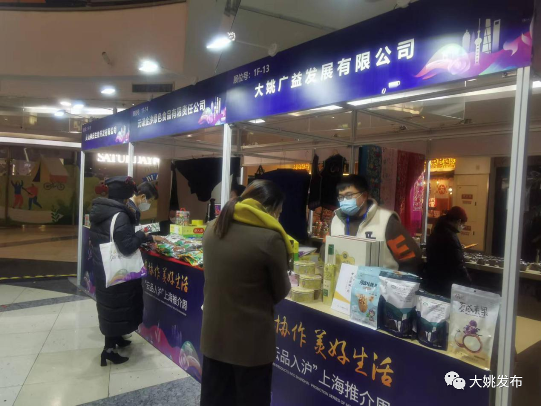 在为期7天的活动中,大姚广益发展有限公司的核桃系列产品、大姚纳苏民族手工艺品发展有限公司的彝绣手工艺品,同全省150多家云南精品农产品生产企业的900多种云南高原特色农产品同台作现场展示,并结合线上“主题+专题”带货直播,将云南文化、艺术、美食搬到上海,让上海市民发现更多云南好物、体验更多云南民俗、感受更多云南之美。县投资促进局相关人员参加了系列活动。