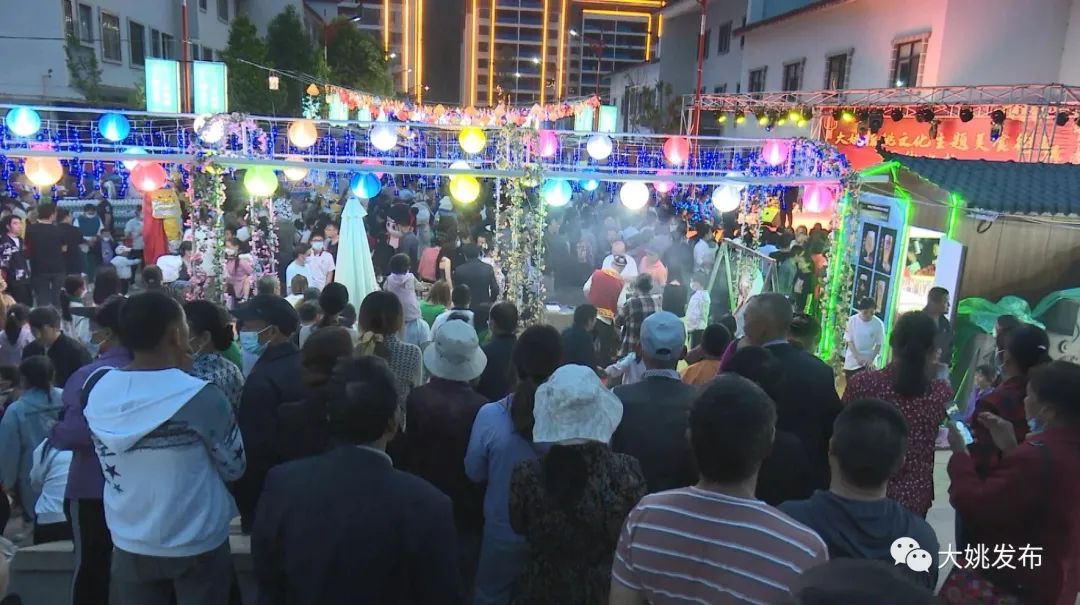 走进美食街,烤羊肉香、烤玉米香扑鼻而来,叫卖声、谈笑声不绝于耳。市民们三个一群,五个一伙前来游玩、购物,越往前走,越是热闹,展销位的商品琳琅满目,服装、玩具、糖果、土特产、日用百货,应有尽有,男女老少纷纷驻足选购;秋千、蹦床、沙池拓展等儿童项目,让孩子们那旺盛的精力得到尽情发挥;文艺展演亮点频出,精彩纷呈的节目引得看客们将舞台围的水泄不通,掌声、欢呼声点燃了大姚的夜晚。