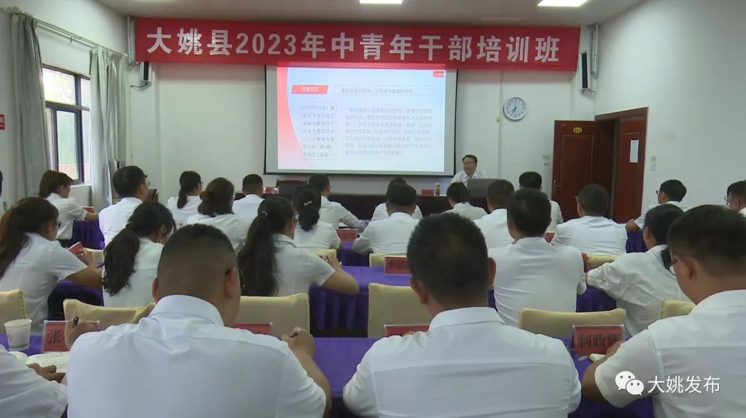 7月19日,县委副书记、县委党校校长周建民为我县2023年中青年干部培训班学员授课。