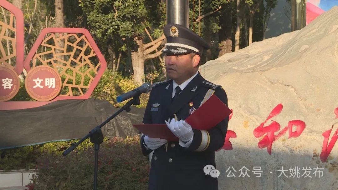 伴随着清晨的第一缕阳光,庄严的警旗在雄壮的警歌中缓缓升起。全体民警庄重、严肃,心中无比自豪,充满对警察职业的崇敬感、责任感和使命感。县人民政府副县长、县公安局局长汪福带领全体民警重温《公安机关人民警察誓词》。