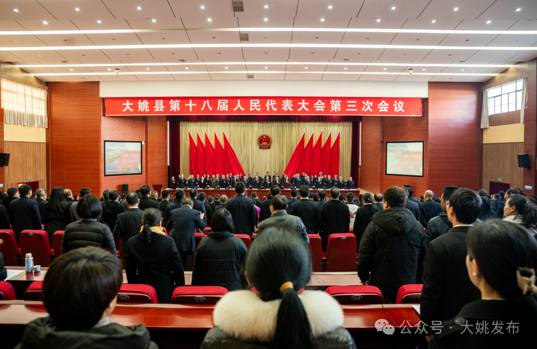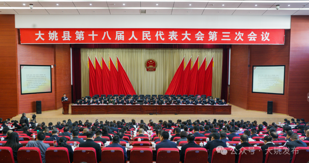 大姚县第十八届人民代表大会第三次会议在县政务中心民族会堂开幕,186名人大代表认真履行宪法和法律赋予的神圣职责,共同为新时代大姚高质量发展贡献智慧和力量。