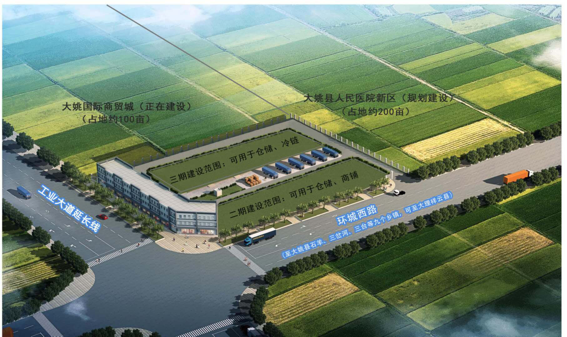 项目所在位置距主城区5分钟车程,为城市规划仓储物流区。本项目南侧毗邻招商引资入驻大姚的香港新亚行国际集团投资建设的一站式商贸综合体“大姚国际商贸城”,西侧是即将建设的大姚县人民医院新区。项目区工业大道延伸段和“一环线”为进出石羊、新街、昙华、三岔河等九个乡镇必经之路,同时也是通往大理祥云县、宾川县、永仁县、元谋县、四川攀枝花的必经之路。项目所处位置规划科学,发展潜力巨大,政策优势、区位优势无可比拟。