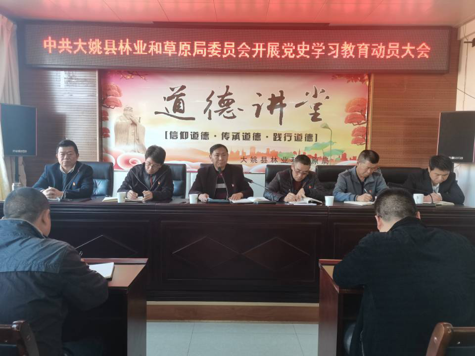 3月15日,大姚县林草局党委召开党史学习教育动员大会,局党政班子成员、各党支部书记、局机关和县国有林场办公室全体人员参加会议。会上,局党委书记、局长席仕斌传达学习了习近平总书记在党史学习教育动员大会上的重要讲话精神和省委、州委、县委党史学习教育动员大会精神,并对我局开展党史学习教育工作进行动员部署。
