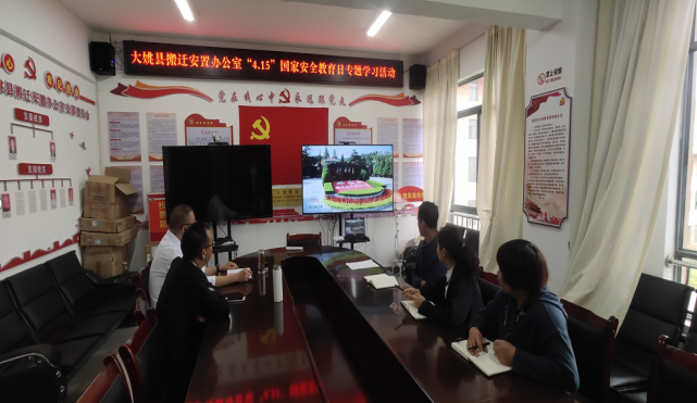 4月15日下午,大姚县搬迁安置办在402会议室组织干部职工召开了“4.15”国家安全教育日专题学习会议,会议学习了《中共大姚县委办公室关于“4.15”期间组织干部职工收看国家安全专题宣传片、学习相关宣传报道的通知》文件精神和国家安全类专题报道,组织收看了国家安全人民防线“12339”公益宣传片、国家安全公民举报专题宣传片及我国渔民增强国家安全意识、打捞境外在我海城投放的窃密装置专题报道。组织全体干部职工参与全民国家安全教育日有奖知识竞答活动。