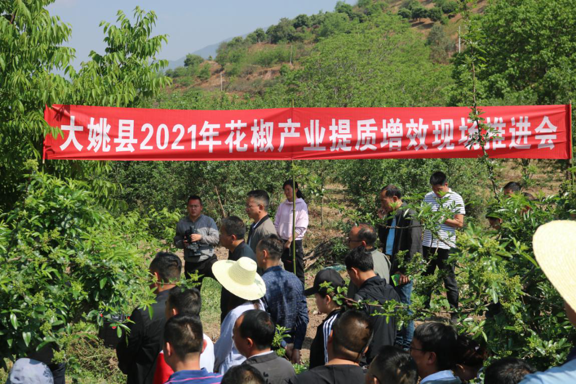 在开展党史学习教育“我为群众办实事”实践活动中,为发展壮大花椒产业,提升花椒种植效益,找准制约花椒产业发展瓶颈,扎实推进大姚县花椒提质增效,促进群众增产增收。4月19日,大姚县在三岔河镇和铁锁乡分别召开花椒提质增效现场推进会。县四班子领导、16个县级部门主要负责人和12个乡镇党委书记、乡镇长参加会议。