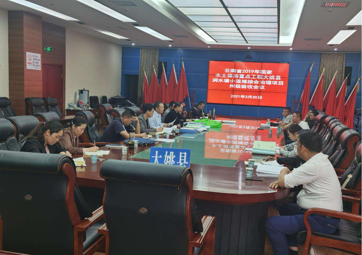 2021年3月30日州水务局水保科马德恒科长一行3人到大姚县对2019年实施的国家水土保持重点工程大姚县涧水塘小流域综合治理项目进行工程竣工验收。县水务局水土保持技术服务股、质量与安全监督股、财务中心、项目所在地金碧镇、涧水塘村委会等相关部门领导和工作人员以及参建单位项目法人、设计、监理及施工单位负责人参加了此次验收工作。在项目验收过程中成立了验收委员会,通过采用看现场、查资料、召开项目验收反馈会议等方式有序开展了项目验收工作,并顺利通过验收。