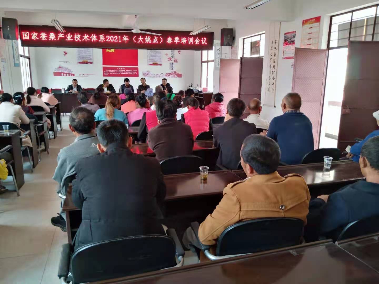 重点是组织对村级蚕桑辅导员、共育户、种养大户等对桑园科学规范管理新技术、新模式、桑树病虫害防治关键节点、小蚕共育技术、大蚕饲养管理及消毒防病措施及其他注意事项、家庭农场相关政策等相关知识讲授,以及剖析蚕桑产业发展前景,反馈茧丝市场回暖信息。