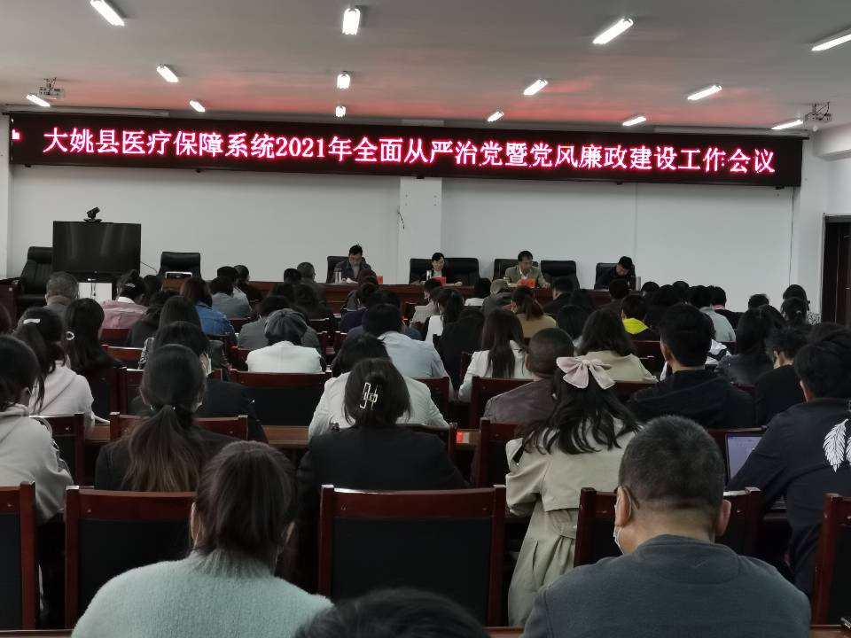 3月22日,大姚县医疗保障系统召开2021年度医疗保障工作会议,全县20家定点医疗机构分管院长及医保经办人员、68家定点零售药店负责人、12个乡镇社保中心医保专干、医保局全体干部职工共120余人参加会议。