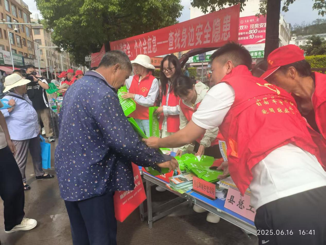 在第24个全国“安全生产月”期间,为深入学习贯彻习近平总书记关于安全生产重要论述和重要指示精神,有效防范和遏制生产安全事故,确保全县安全生产形势持续稳定向好,大姚县积极响应全国“安全宣传咨询日”活动号召。6月16日,大姚县住房和城乡建设局在永盛农贸市场门口参与了由县安委办牵头组织共有22家单位共同参与的大姚县2025年“安全生产月”“人人讲安全、个个会应急——查找身边安全隐患”线下宣传活动。