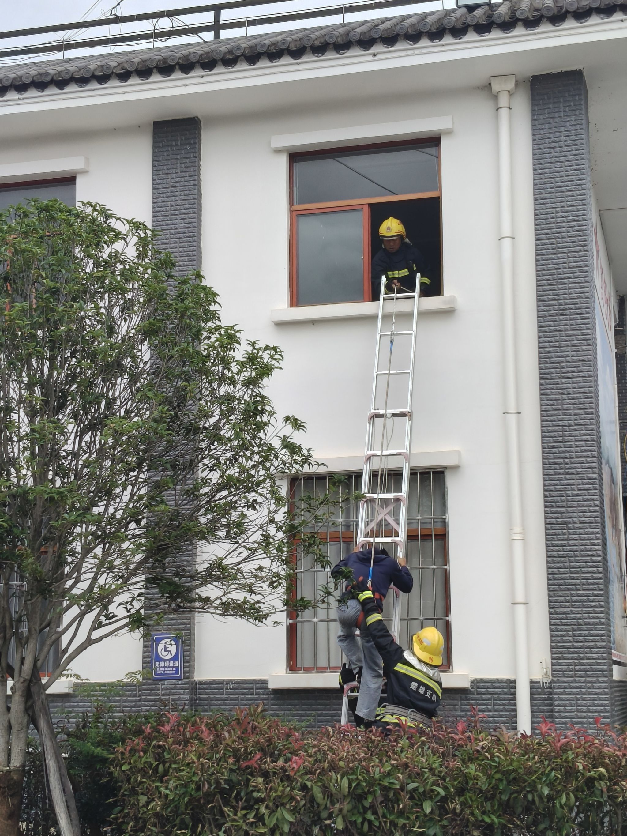 模拟实战,讲解应急技巧。“乡亲们看咱们身边这情况,就像家里二楼突然着火、有人被困!咱消防队员现在爬梯子救人,这场景可不是演热闹,是教大家真遇到事儿咋应对!”在村头院坝的宣传现场,专职队员模拟日常火灾场景讲解应急处置技巧,现场架起六米拉梯,快速模拟“2楼被困人员救援”,从梯脚固定、梯身架设到“人员转移”全程规范演示,还向村民说明“农村道路通畅对救援时效的影响”,引导大家自觉清理房前屋后杂物、保持消防通道畅通。