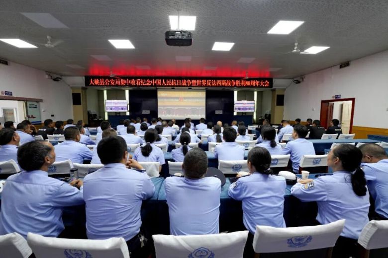 大姚公安全体民警、职工、辅警通过视频会议集中收听收看。