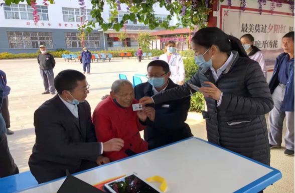 大姚县中心敬老院为了解决在院供养老人金融社保卡认证及信息完善问题,特邀银行工作人员到敬老院上门服务。