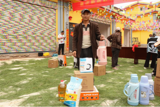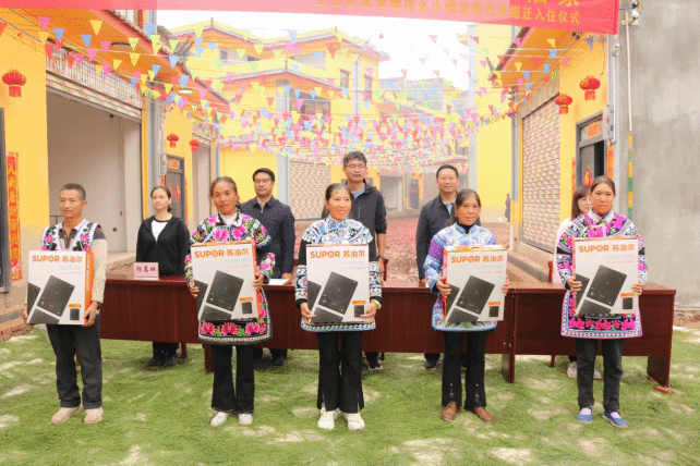 仪式现场,为搬迁户举行了新居钥匙领取仪式,还为25户搬迁户捐赠大米、食用油、电磁炉、水壶等生活用品。现场气氛热烈而温馨,搬迁群众脸上洋溢着幸福的笑容,热情地跟大家分享喜悦,对新居生活满怀憧憬。