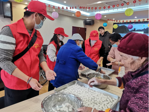 “老人家,我们又来看你了。今年过年热闹不?”“身体怎么样?在敬老院住得习不习惯?”一大早,志愿者们来到大姚县中心敬老院,为老人们进行健康知识讲座,与老人们面对面交流、拉家常,详细询问老人们的身体、生活情况,并为老年人们送上礼物和节日祝福。当天中午,志愿者们一行还来到大姚医养照护中心,与巧手的爷爷奶奶们一起包汤圆,听着爷爷奶奶们聊着最近的趣事儿,大家你一言我一语,不一会儿,上百个雪白可爱的汤圆都包好了。大家不仅吃上了热乎的汤圆,期间志愿者们还为老人表演了小节目,活动现场一副其乐融融的景象。