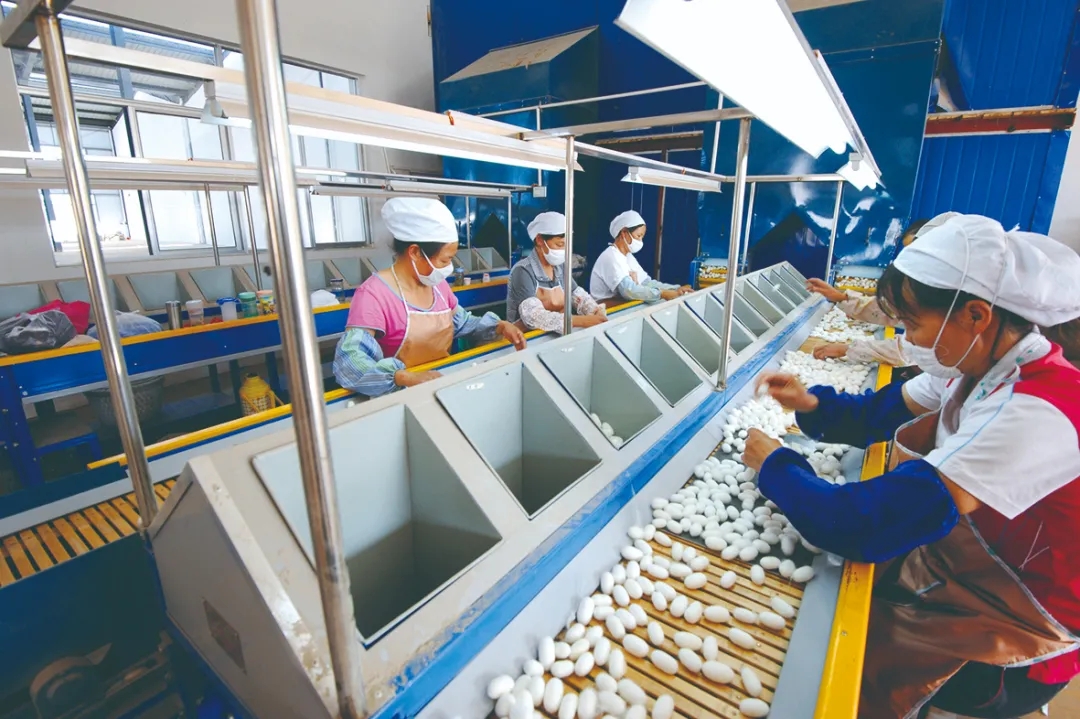 对现有的蚕桑园开展提质增效工程,新建桑叶茶、桑葚酒、桑叶饮料、桑果膏等食品生产线,开发真丝服装、真丝家纺等茧丝绸精深加工产品的生产及销售。
