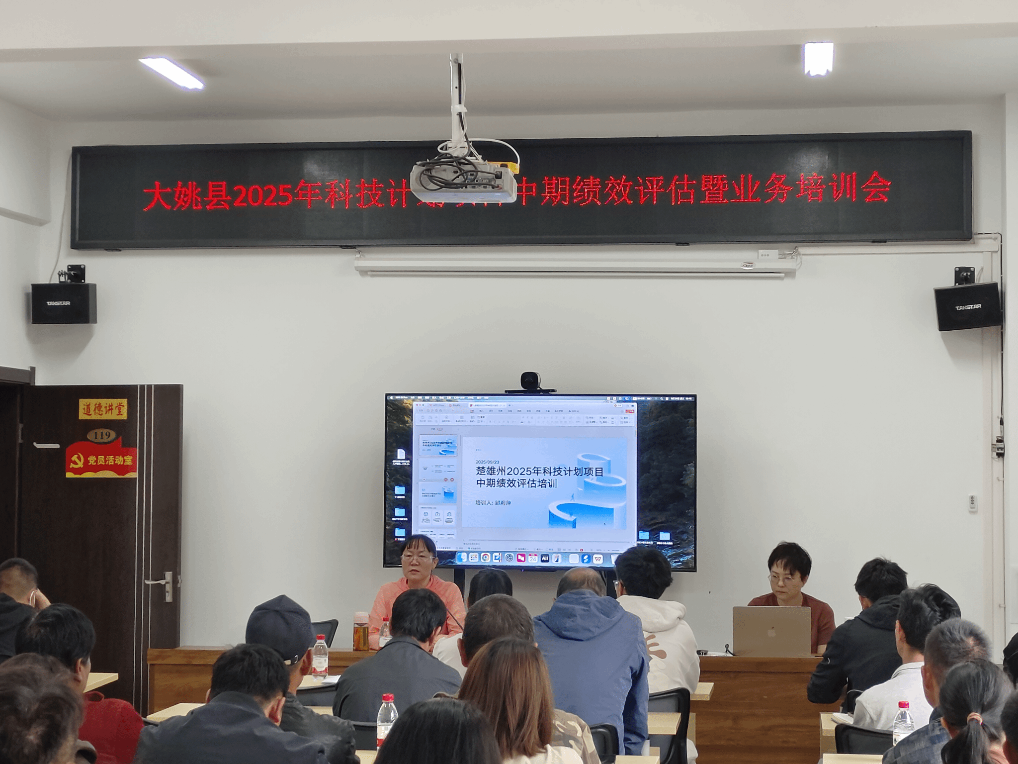 9月24日,大姚县工业信息化商务科学技术局组织开展2025年科技计划项目中期绩效评估及业务培训活动,项目承担单位负责人、科技特派员、三区科技人才共60余人参会。州科技局科技监督与区域创新科科长李显星、中汇财税咨询管理有限公司邹莉萍一行到会指导。此次活动旨在精准掌握项目实施进度,规范资金使用管理,提升科技创新工作专业化水平,为全县高质量发展注入科技动能。