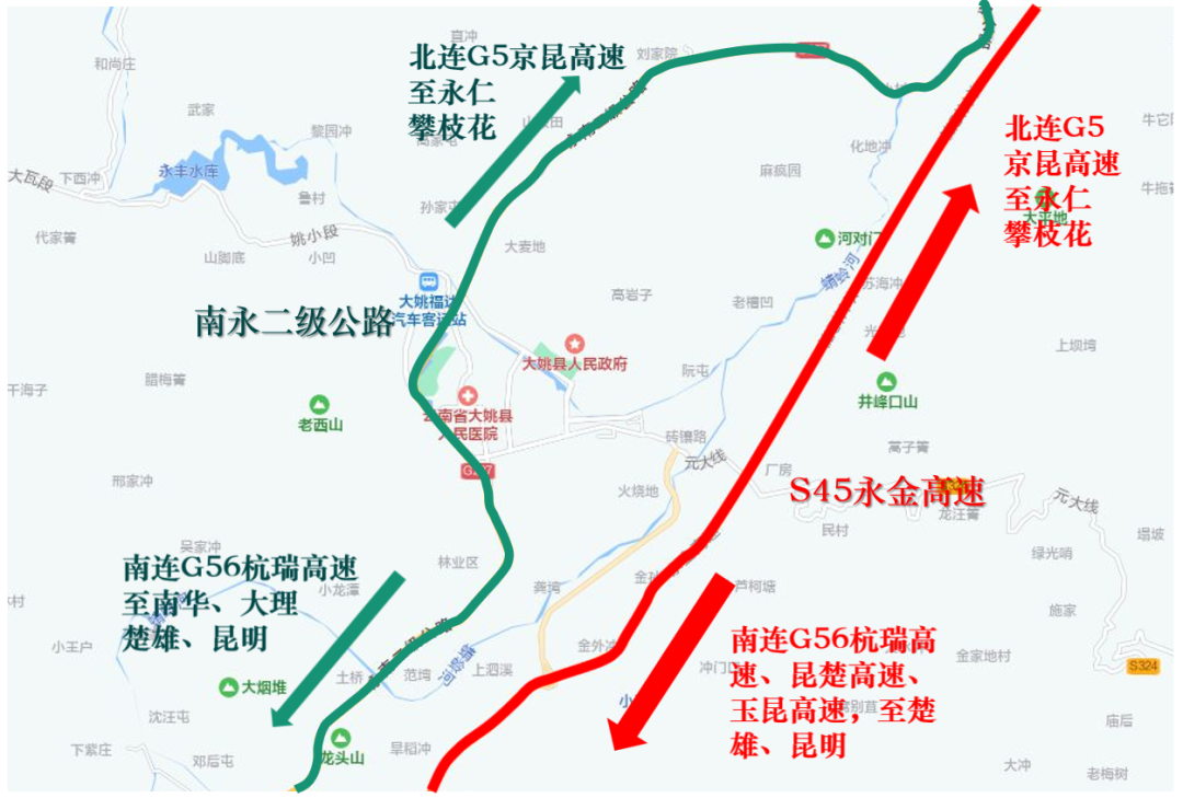 3.交通区位:楚姚高速、南永二级公路过境,其中楚姚高速南连昆楚高速、玉楚高速、杭瑞高速(G56)、沪瑞线(G320)、S214;南永二级公路纵贯县境东南部,北连京昆高速(G5)、G108,南连杭瑞高速(G56)、沪瑞线(G320)。