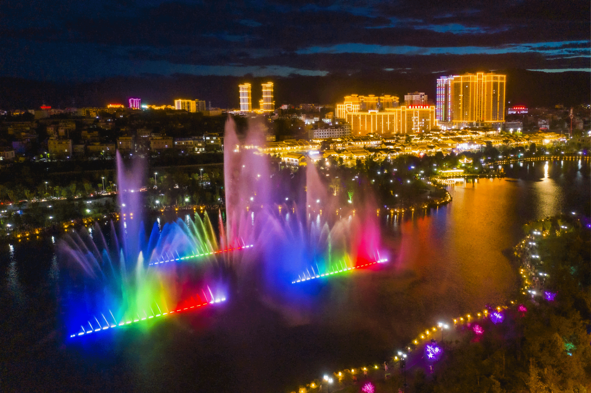 (蜻蛉湖、东塔湖夜景)