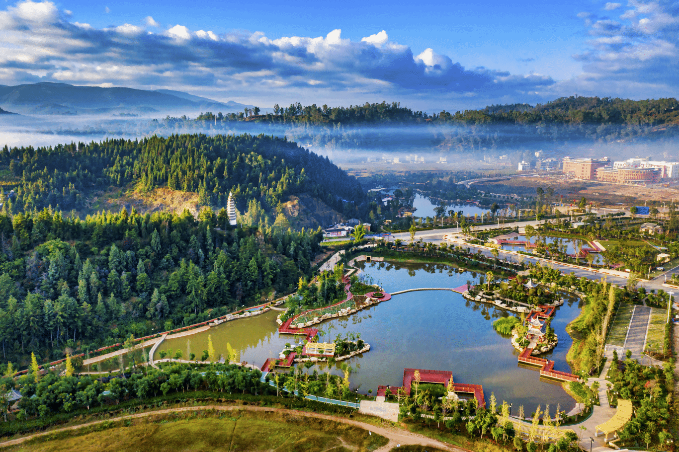 绿美画卷更靓丽,品质生活更可感。“绿美大姚”建设成果斐然,成功创建为“省级绿美城市”。新增城市绿地约21万平方米,建成区绿地率达40.28%,人均公园绿地面积14.93平方米。蜻蛉湖获评“国家级水利风景区”,14座“口袋公园”及系列亮化工程点缀城区,构建起“推窗见绿、出门入园”的宜居图景。同时,建成“智慧停车”泊位3080个,打造5大特色商圈和19个文化场馆,城市“烟火气”与“文化味”日益浓厚。