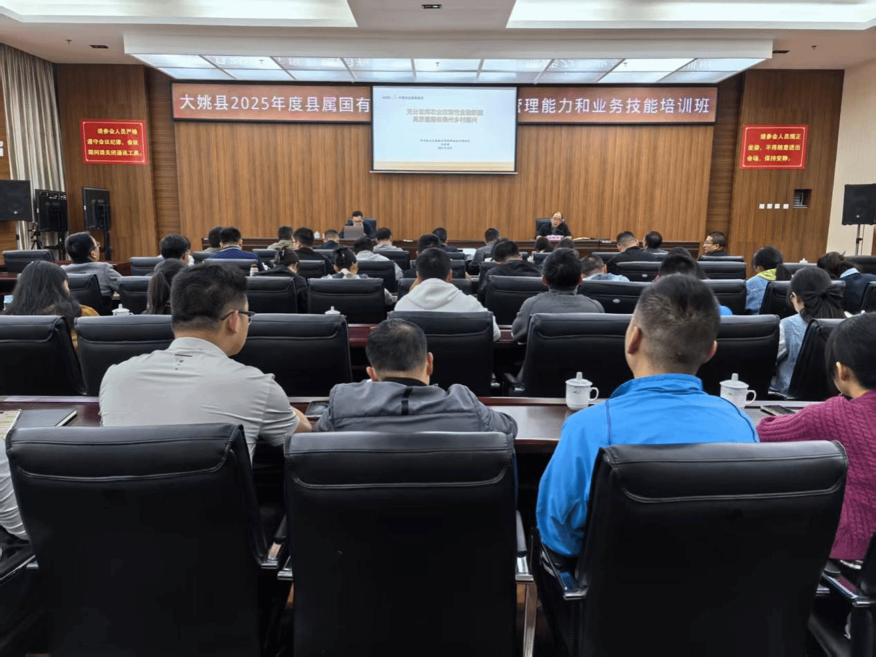 为深入贯彻落实党中央、国务院关于深化国资国企改革的决策部署,不断提升县属国有企业领导干部的综合素质,完善知识结构,增强综合管理能力、创新能力和执行能力,推动县属国有企业高质量发展。大姚县国资委于2025年10月16日至17日,在县政务中心会堂举办“大姚县2025年县属国有企业管理人员提升管理能力和业务技能培训班”,大姚县国资委部分国资监管人员、县属国有企业领导班子成员及中层以上管理人员共50余人参加此次培训。