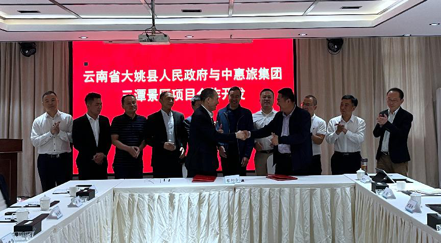 2022年5月13日,大姚县人民政府与中惠旅智慧景区股份管理有限公司举行三潭瀑布旅游景区合作开发项目签约仪式。仪式由县政协副主席王定钊主持,县委副书记、县人民政府县长杨军、县文化和旅游局、县投资促进局、县国投公司等相关部门主要负责人出席签约仪式。