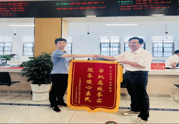 近日,云南省投资控股集团有限公司云南S35永金高速永仁至大姚段项目经理部将一面印有“审批高效务实,服务暖心亲民”的锦旗,送到大姚县政务服务管理局投资项目审批服务窗口,用最质朴、最真挚的方式表达对窗口工作人员热情、周到服务的感谢之情。