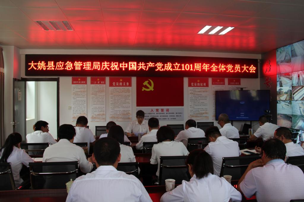 2022年7月1日,中共大姚县应急管理局委员会举行庆祝中国共产党成立101周年大会,大姚县应急管理局全体干部职工参加会议,庆祝中国共产党成立101周年,回顾党的光荣历史,缅怀党的丰功伟绩,旨在发扬党的优良传统,进一步提高党组织的凝聚力、战斗力,增强广大党员的党性意识。