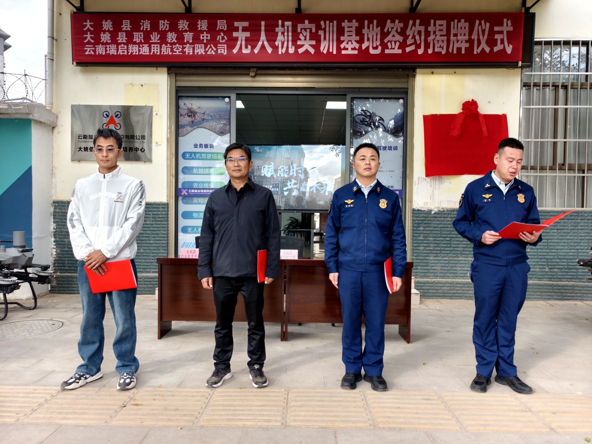 近日,大姚县消防救援局、大姚县职业教育中心与云南瑞启翔通用航空有限公司“消校企”三方正式签约,同步启用标准化无人机实训基地。通过创新应急人才培养“政产学研用”融合模式,构建“实战牵引技术、技术反哺实战”的良性循环新格局,为县域消防救援能力现代化注入强劲科技动能。