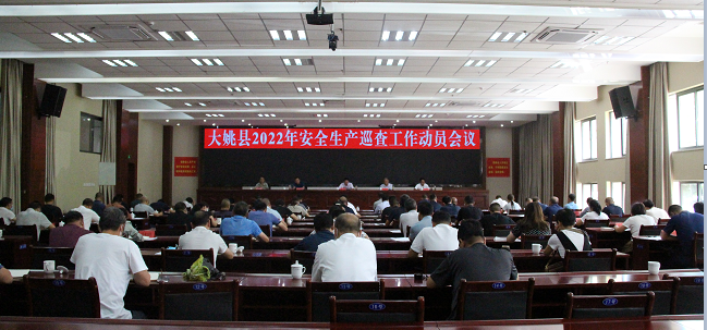 为了全面深入贯彻落实习近平总书记关于安全生产重要论述和党中央国务院、省委省政府、州委州政府安全生产重要决策部署,全面落实国务院安全生产“十五”条,压紧压实安全生产责任,严守安全生产红线底线,确保社会安全稳定。大姚县委县政府高度重视,及时召开县委常委会、县政府常务会对安全生产工作所面临的形势进行了认真分析研究,采取措施加以推进。中共大姚县委办公室 大姚县人民政府办公室印发了《大姚县贯彻落实国务院“安全生产15条”工作任务分解》的通知,细化了73项任务;下发了《大姚县安全生产巡查工作制度》和《大姚县2022年安全生产巡查工作方案》。2022年7月25日下午3:00,大姚县组织召开了大姚县2022年安全生产巡查工作动员会议。县人民政府县长杨军,副县长马学富、李忠凯、高培勇、汪福,县级行业主责部门主要负责人,各乡镇主要负责人参加了会议。