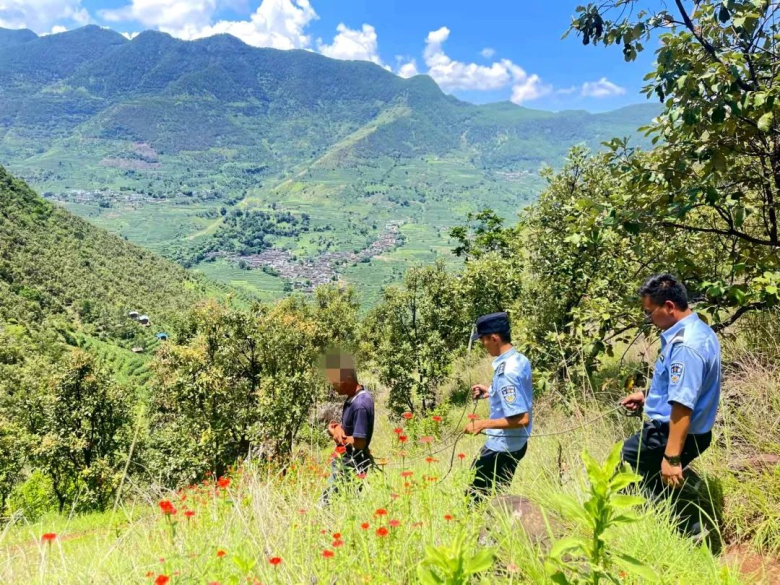 小案不“小”破。虽然锁定了嫌疑人,但嫌疑人为了逃避处罚,作案后逃窜至大山深处的“羊窝子”躲藏起来。湾碧乡是大姚县最远的乡镇,辖区内山高路远坡陡箐深,嫌疑人藏匿的地点交通工具无法直接到达,给抓捕工作带来了极大的不便。“道虽迩,不行不至;事虽小,不为不成”,湾碧派出所民警辅警齐心协力,徒步3小时进山搜索,终将躲藏在深山里的嫌疑人抓捕归案。山路崎岖,为防止嫌疑人逃脱,民警找来绳索,将嫌疑人“绳”之以法,带回公安机关继续调查处理。