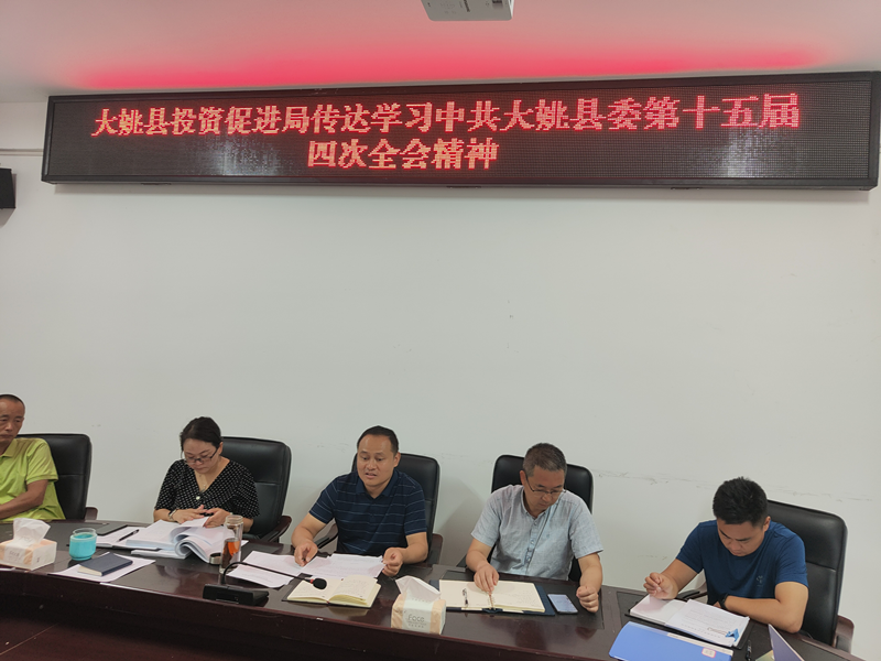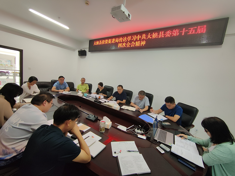 2022年8月15日,县投资促进局召开专题会议传达学习中国共产党大姚县委员会第十五届四次全体会议精神,会议由局党组书记、局长普文平主持,全体干部职工参加了会议。
