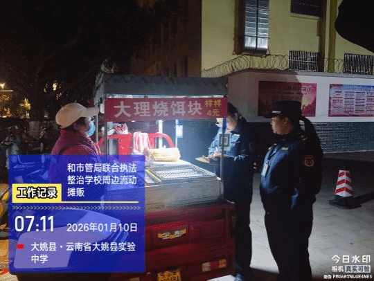 为提升整治效能,执法一大队主动作为,积极与市管局建立联合执法机制。在日常管控中,一经发现涉嫌存在食品卫生问题的摊贩,立即通报市管局;在联合整治行动中,城管主要负责清理占道经营、维持现场秩序,为市场监管执法人员进行卫生检查、食材溯源等提供有力保障。此外,执法人员还向过往学生和家长普及流动摊贩食品的潜在风险,倡导大家自觉抵制不卫生食品,共同参与校园周边环境治理。