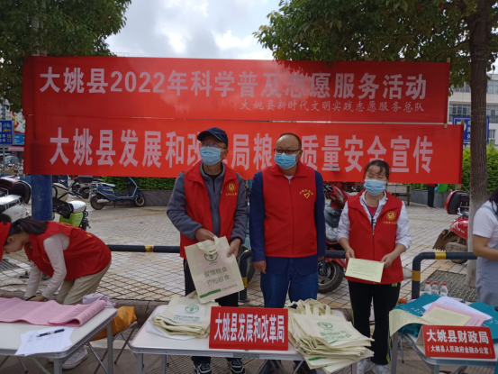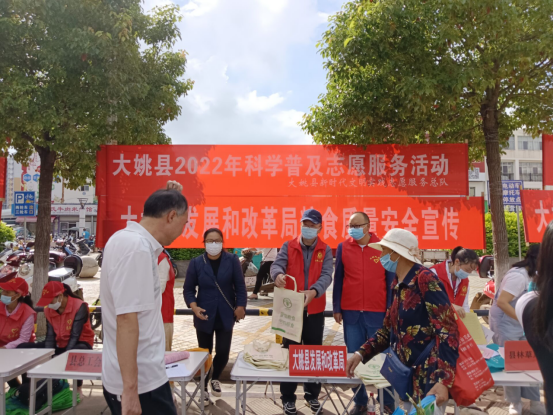 2022年9月17日,大姚县发展和改革局按照国务院、省州县食安办的要求,围绕食品安全宣传周“共创食安新发展共享美好新生活”的主题到永盛农贸市场开展2022年粮食质量安全宣传。