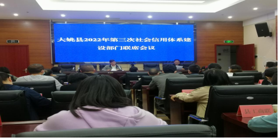 2022年10月9日大姚县在政务中心会堂龙山厅召开2022年第三次社会信用体系建设部门联席会议。会议由县人民政府副县长宋爱生同志主持。县社会信用体系建设部门成员单位分管领导共50余人参加会议。