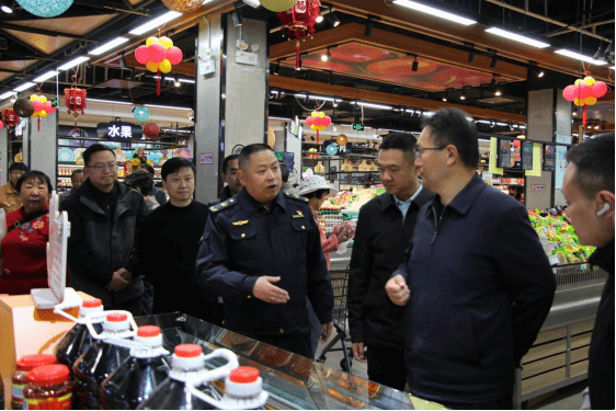 督导组围绕群众节日消费热点及民生食品,聚焦食品安全、物价稳定、产品质量等重点环节,实地查看各类经营场所运营情况。在城市港湾家易购超市,王丽平详细询问了米、面、油、肉等民生商品的货源组织、库存储备、价格波动、供应保障等情况,督促商超负责人要严把进货关、质量关,保障节日市场商品供应充足、价格平稳、质量安全。在永盛农贸市场,与经营户、群众亲切交流,详细了解肉类、菜类价格,查看熟食区食品安全,向市场负责人询问了商品供应、安全保障等情况,要求市场负责人强化诚信经营意识,严格遵守法律法规,自觉履行主体责任,维护节日期间良好市场秩序。