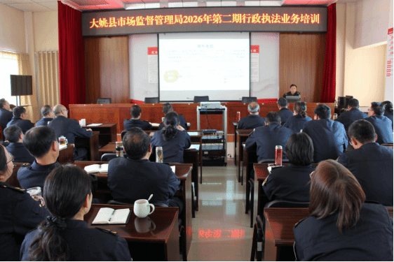 为切实提升全局执法人员综合素质与履职能力,锻造过硬基层骨干队伍,近日,大姚县市场监督管理局组织开展为期2天的行政执法业务培训,局领导班子、机关各股室、各乡镇市场监管所全体执法人员共70人参加培训。