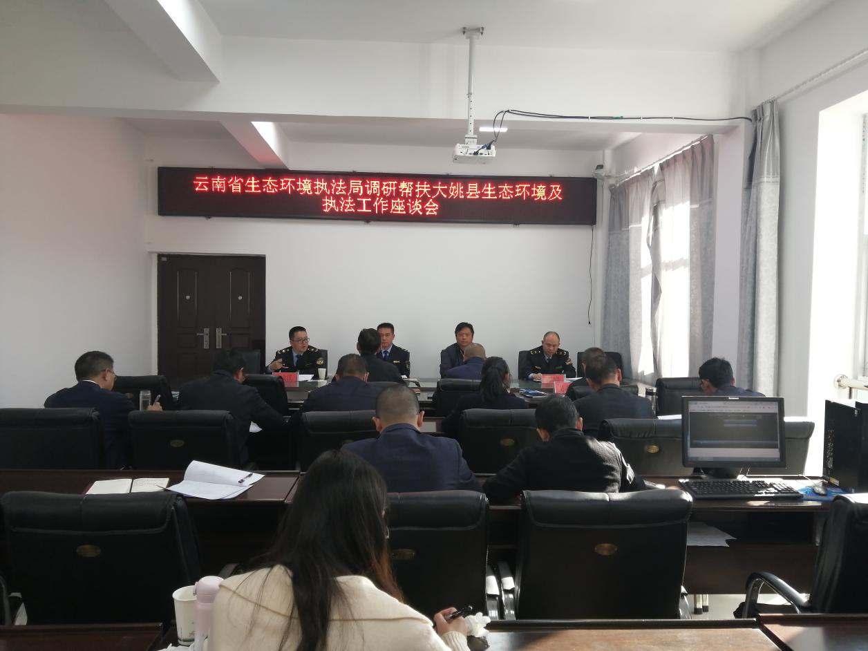 楚雄州生态环境局党组书记赵胜祥、大姚县人民政府副县长高培勇、大姚分局班子成员、股室长、执法大队全体人员参加了调研座谈会。