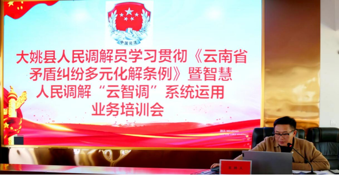 为深入学习贯彻党的二十大精神,将会议精神融入到矛盾纠纷多元化解工作中,通过加强人民调解信息化建设助推智慧人民调解工作,大姚县司法局于2022年11月23日下午,组织召开全县人民调解员学习贯彻《云南省矛盾纠纷多元化解条例》暨智慧人民调解“云智调”系统运用业务培训会议。全县12个乡镇,9个行业性人民调委会主任、调解员共160人通过主会场和乡镇远程视频分会场参加培训。