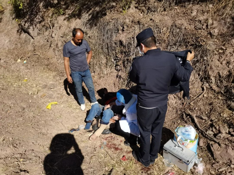11月28日下午,三岔河派出所接到群众报警称三三线两公里处发生一起交通事故摩托车驾驶员受伤,民警立即驱车前往查看情况。